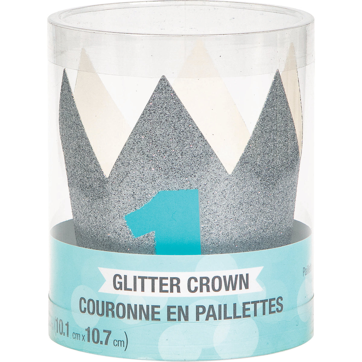 Mini corona plateada con brillo azul | Primer cumpleaños niño