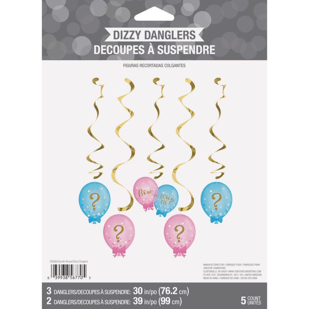Decorar la fiesta nunca fue tan divertido con estas serpentinas en espiral para revelación de género. El set trae 5 piezas con el mensaje Bow or Bow Tie (“Moño o Corbatín”), perfecto para darle un toque temático y emocionante al gran momento.